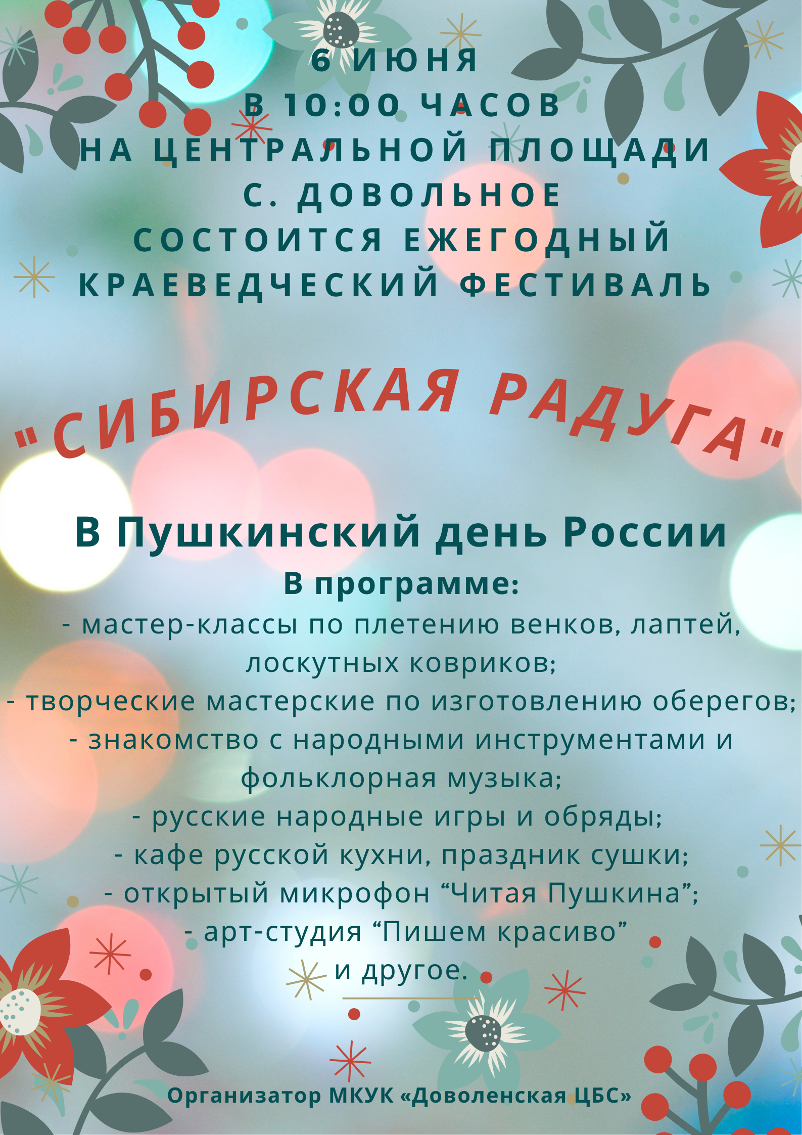 Друзья! Приглашаем всех желающих стать участниками краеведческого фестиваля "Сибирская радуга"!